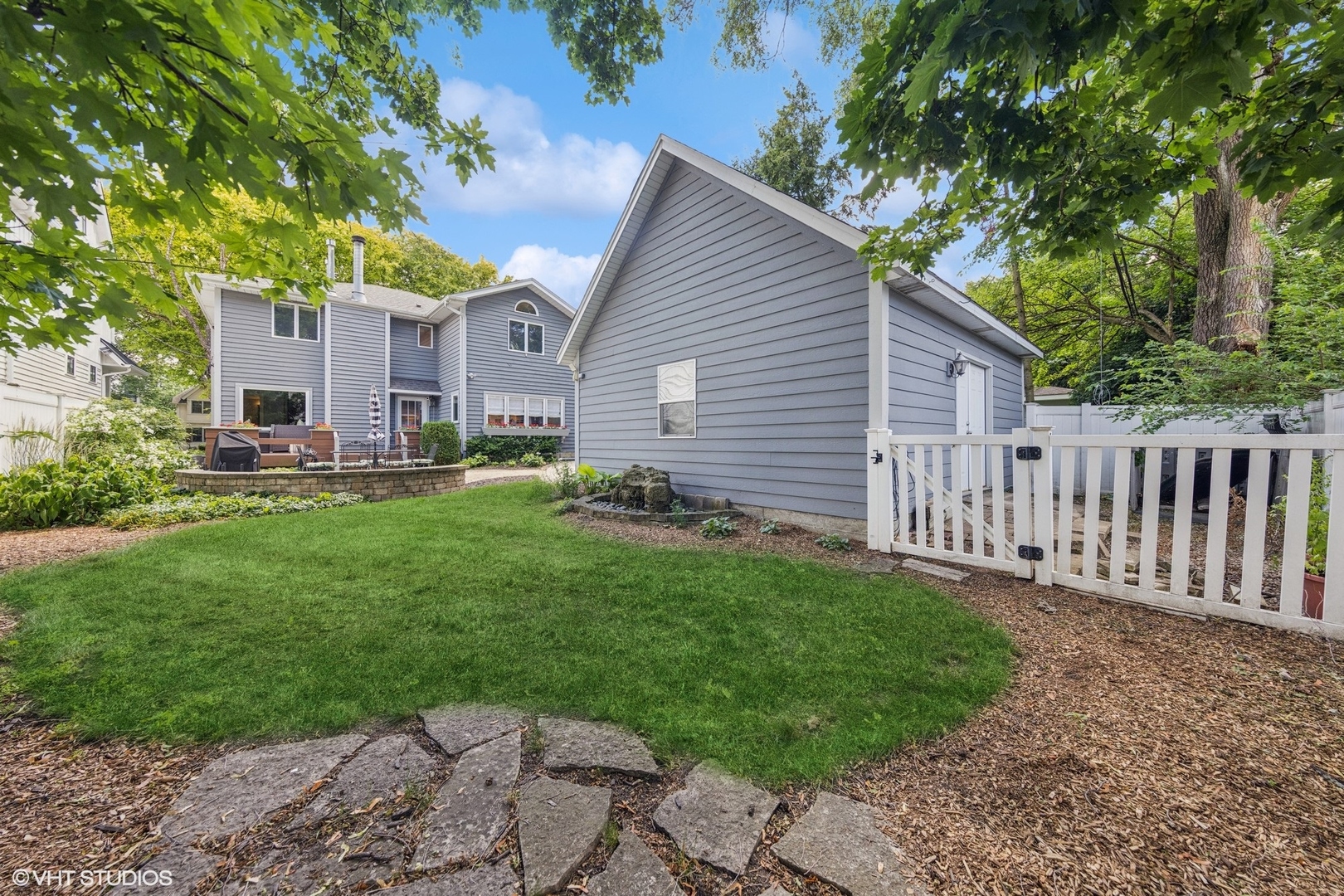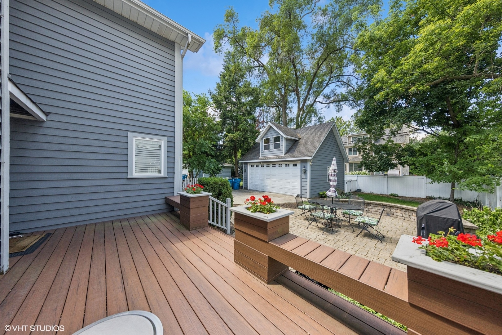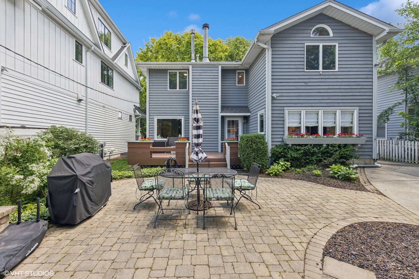 This updated 5-bedroom, 3.1-bathroom home offers the ideal blend of timeless comfort and modern style-perfectly situated and close to town, parks, schools, and two train stations. Step onto the charming front porch and into a home that immediately feels warm and welcoming. The living room flows into a cozy family room with a fireplace and custom window seats-an ideal spot to unwind or entertain. A spacious formal dining room leads to the heart of the home: a renovated chef's kitchen featuring custom Shaker cabinetry, stainless steel appliances (including a Wolf cooktop and microwave), spacious walk-in pantry, a breakfast bar, and a sunny breakfast room that overlooks the beautifully manicured backyard. Upstairs, you'll find four bedrooms, including three with newer carpeting and access to a shared Jack and Jill balcony. The hall bathroom has been stylishly updated with a newer vanity, lighting, and a tub/shower combo. The primary suite features generous closet space and a unique en-suite bath with architectural character, a soaking tub, shower, and a custom vanity. The finished lower level extends your living space with a 5th bedroom(currently used as an office), full bath, rec room with built-ins, a large storage area, and a private laundry suite. Outdoors, enjoy the back deck with built-in planters, a detached two-car garage with additional storage, and a lush, landscaped yard. This home checks all the boxes: updated, spacious, move-in ready-and close to everything Hinsdale has to offer.