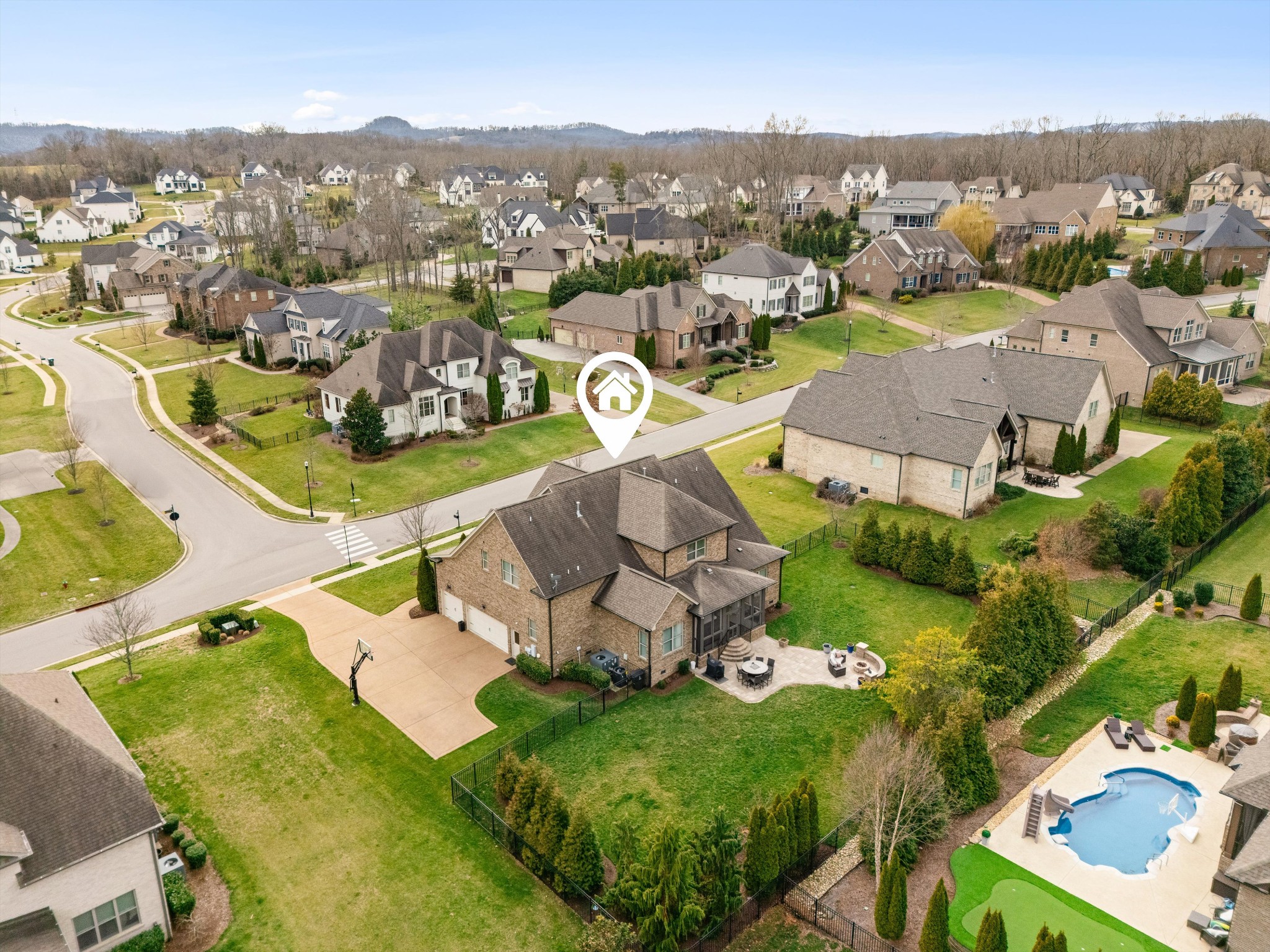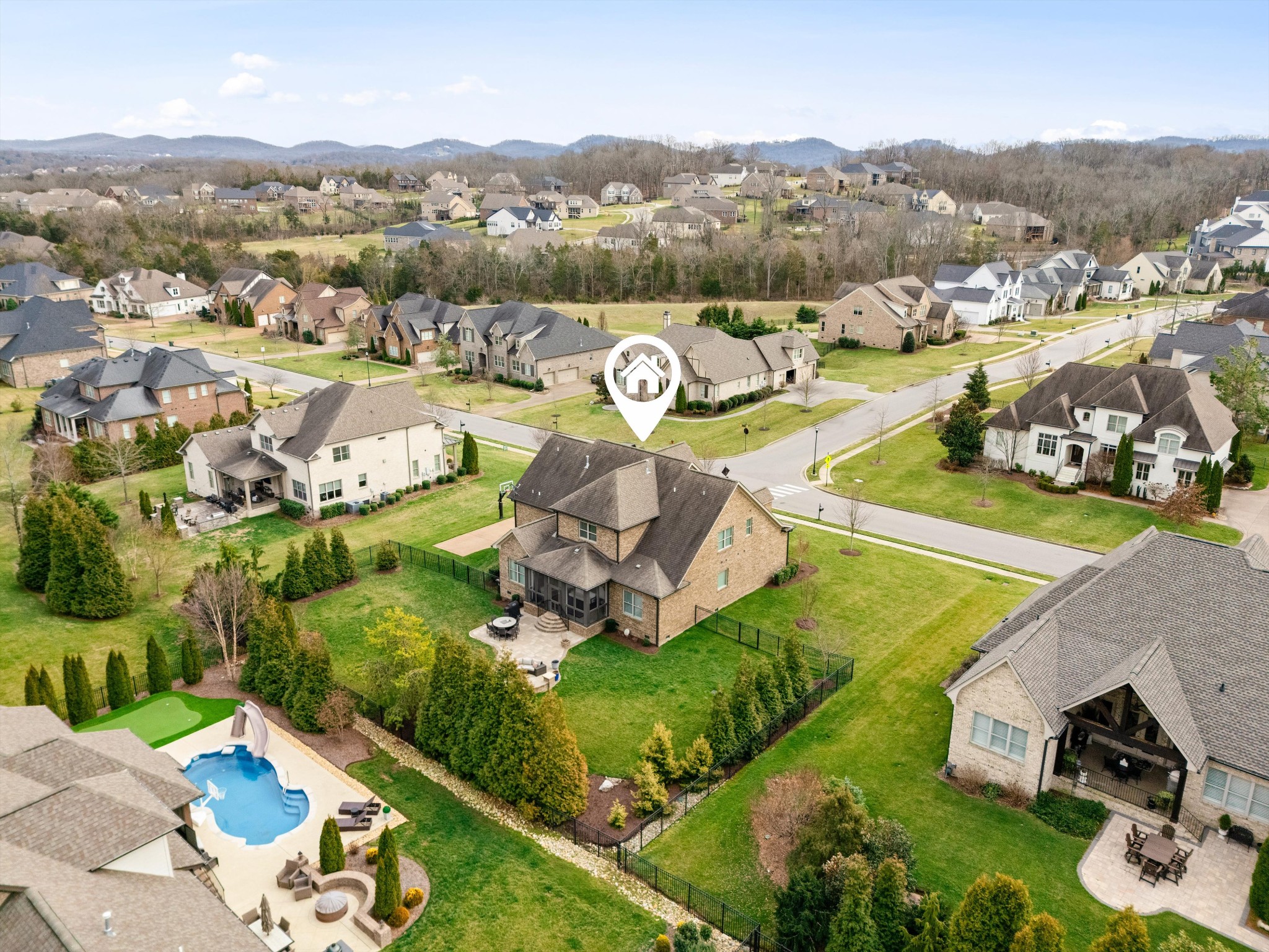 The main level primary suite offers everyday convenience with a sense of quiet retreat. The open concept family room flows seamlessly into the kitchen and breakfast nook, creating an inviting backdrop for both relaxed living and elevated entertaining. A separate formal dining room with serving bar adds a layer of sophistication for memorable gatherings.
