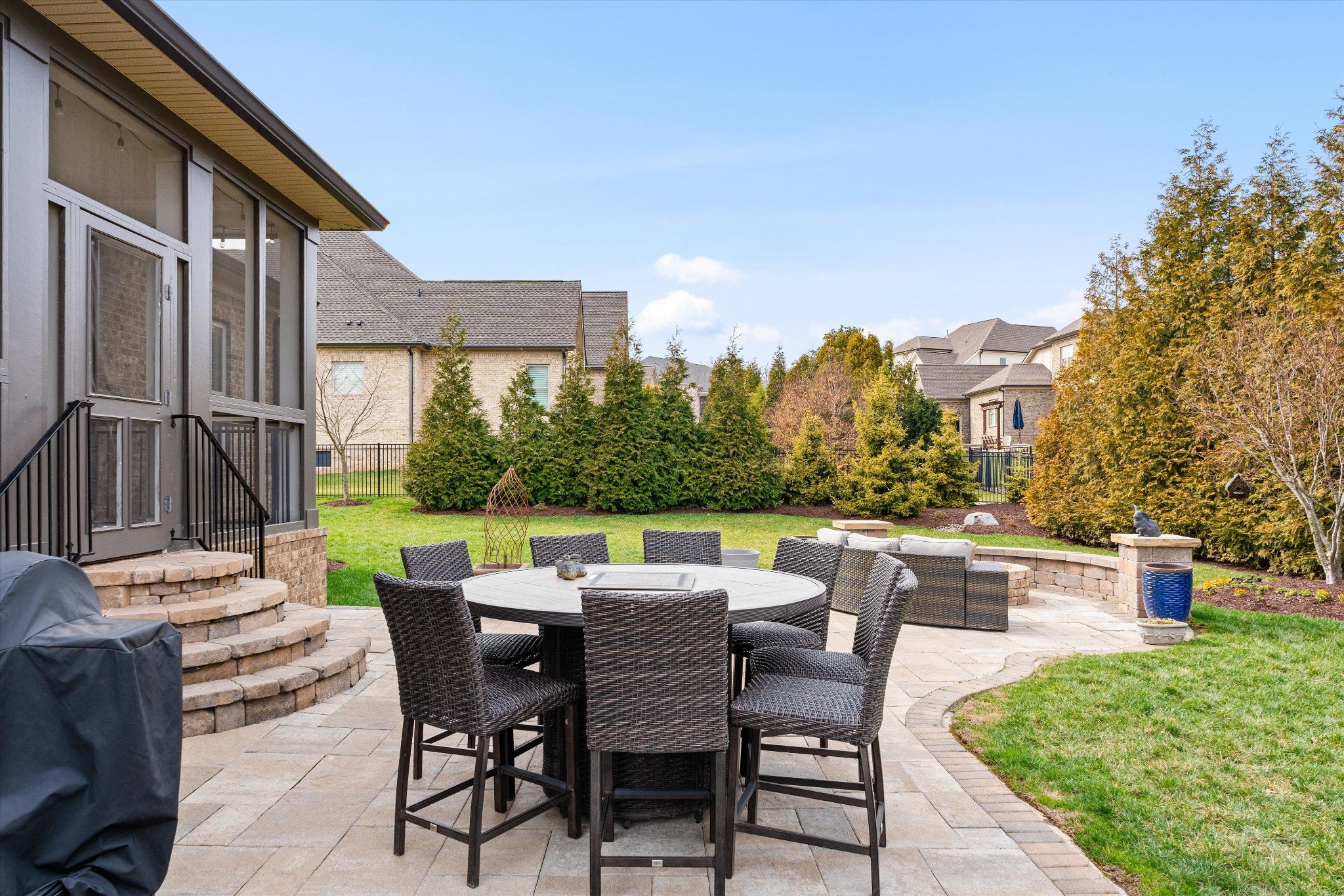 Exceptional storage is found throughout with generously sized closets designed for modern living. Outdoors, a newly screened patio extends the living space, while an additional patio with fire pit creates the perfect setting for year round evenings under the stars. The nicely landscaped yard features wireless irrigation, French drains, full fencing, and added privacy trees for both beauty and ease.