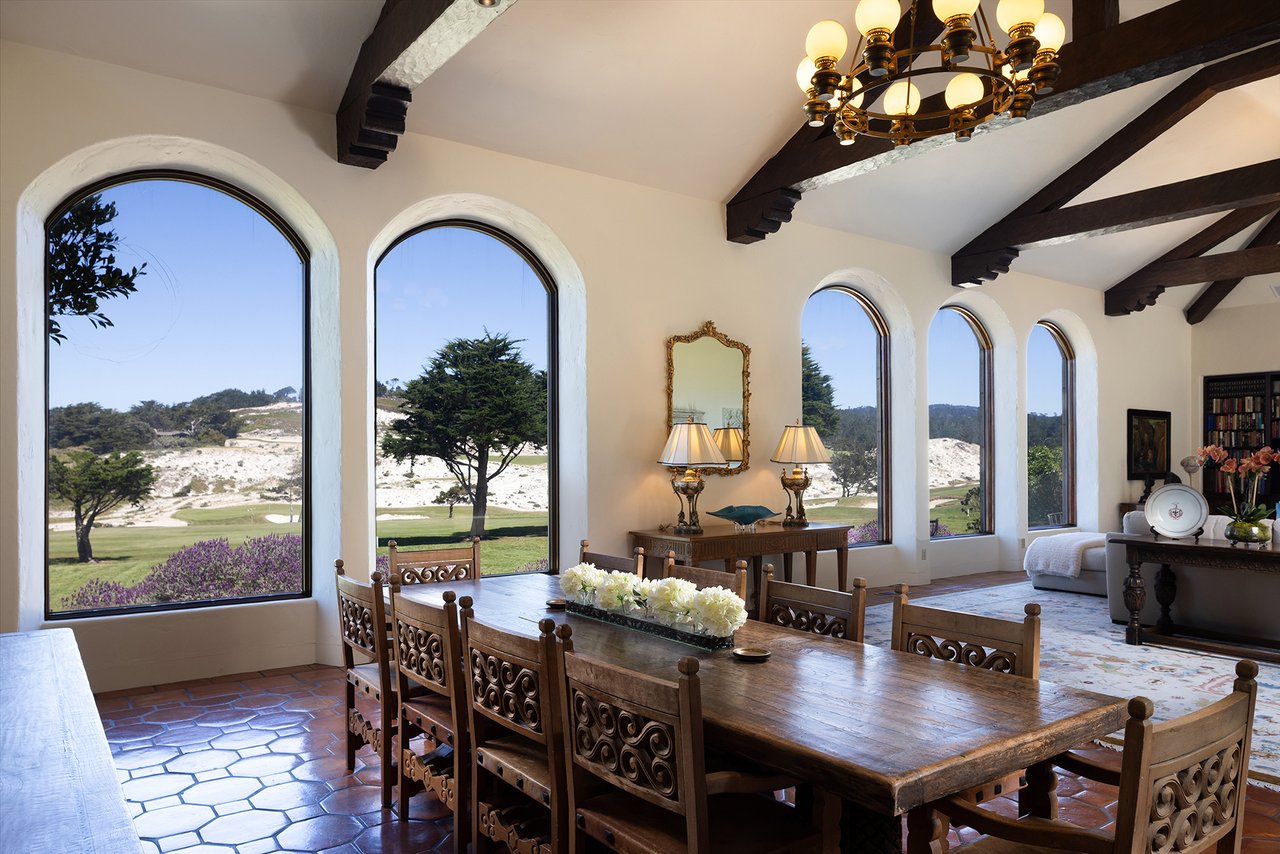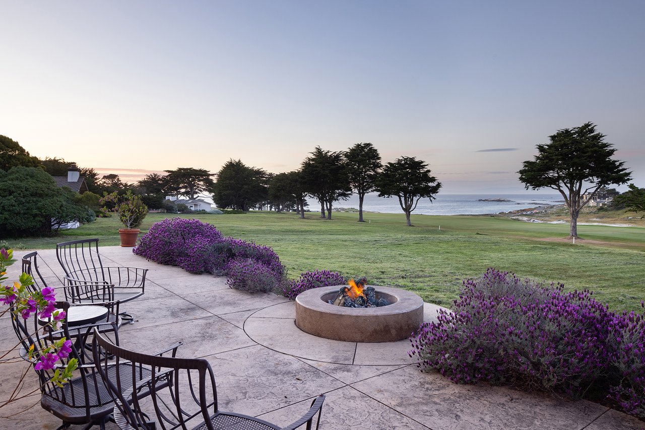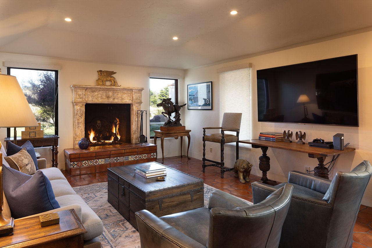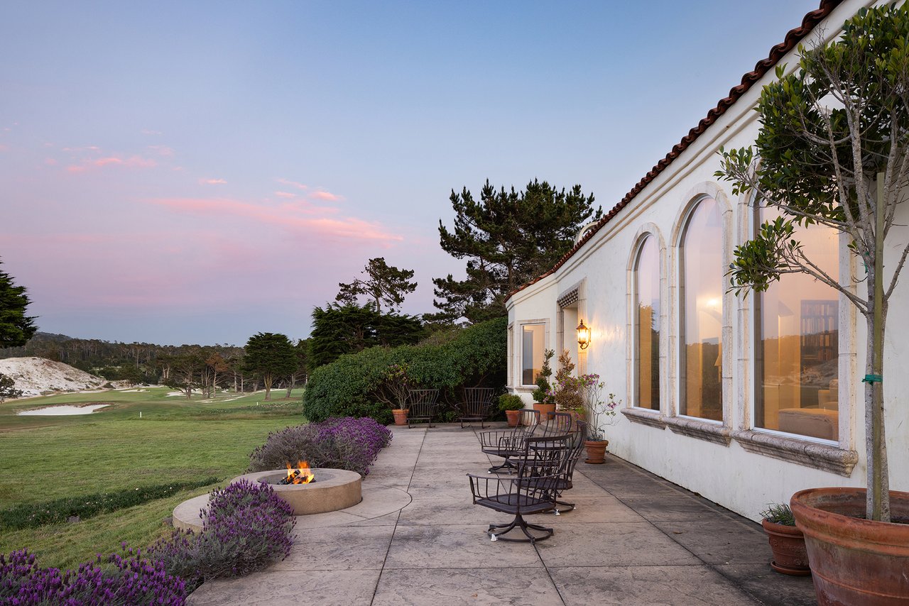 Porque Lane is a warm and welcoming single-level home in the heart of Pebble Beach located on Cypress Point Club, blending comfort with a quiet sense of luxury. The main residence offers three spacious ensuite bedrooms, along with a private guest house that’s perfect for hosting family or friends while still maintaining a sense of separation. Inside, the home feels both relaxed and refined, with inviting living spaces, a cozy library, and both casual and formal dining areas that make it easy to gather or unwind at your own pace. At the center of it all, a beautiful open-air limestone courtyard with a fireplace creates a natural place to relax and enjoy the indoor-outdoor lifestyle, while the surrounding outdoor seating and manicured front lawn add to the peaceful setting. It’s a home that feels easy to settle into, yet special enough to remember.