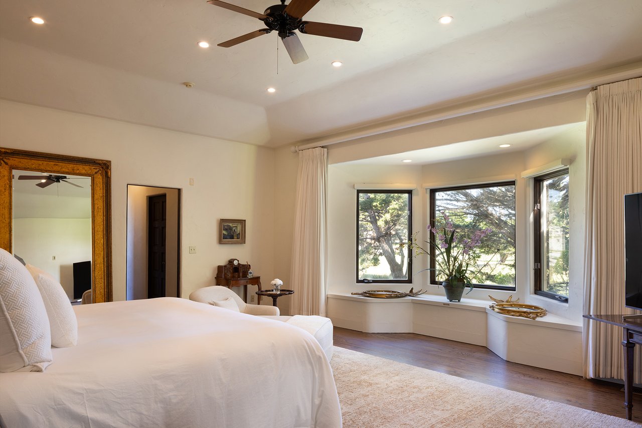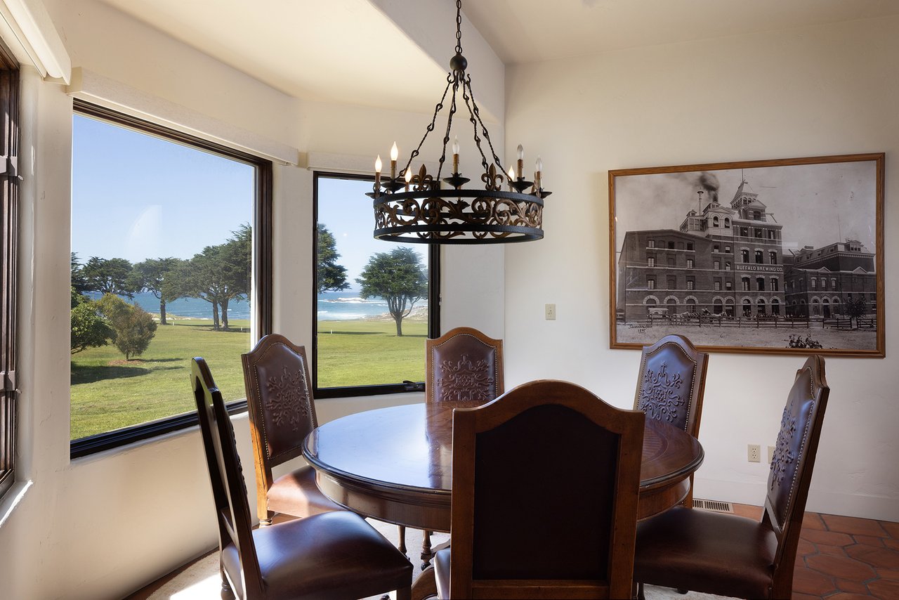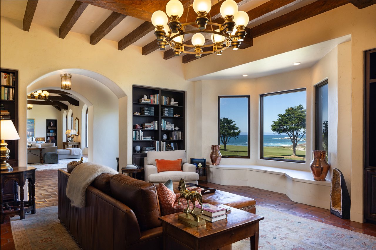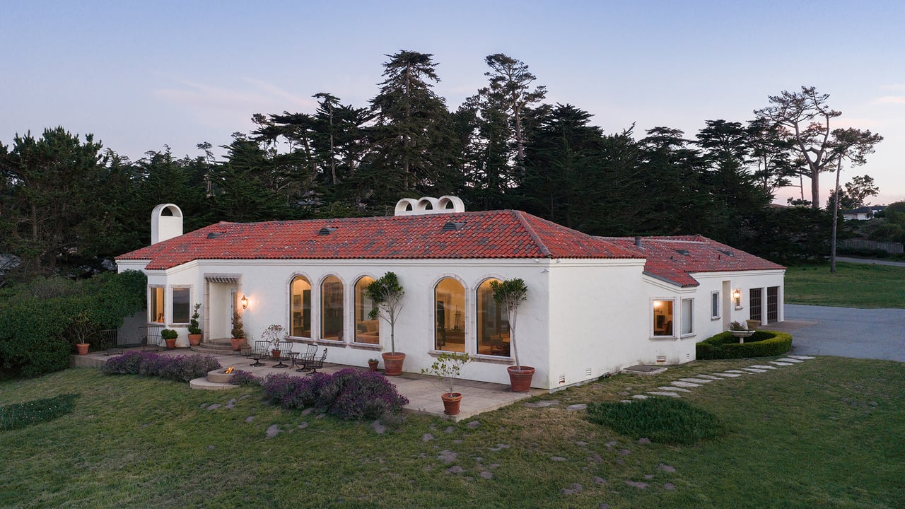 Porque Lane is a warm and welcoming single-level home in the heart of Pebble Beach located on Cypress Point Club, blending comfort with a quiet sense of luxury. The main residence offers three spacious ensuite bedrooms, along with a private guest house that’s perfect for hosting family or friends while still maintaining a sense of separation. Inside, the home feels both relaxed and refined, with inviting living spaces, a cozy library, and both casual and formal dining areas that make it easy to gather or unwind at your own pace. At the center of it all, a beautiful open-air limestone courtyard with a fireplace creates a natural place to relax and enjoy the indoor-outdoor lifestyle, while the surrounding outdoor seating and manicured front lawn add to the peaceful setting. It’s a home that feels easy to settle into, yet special enough to remember.