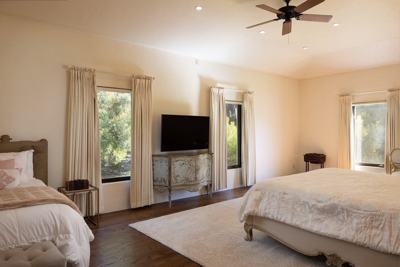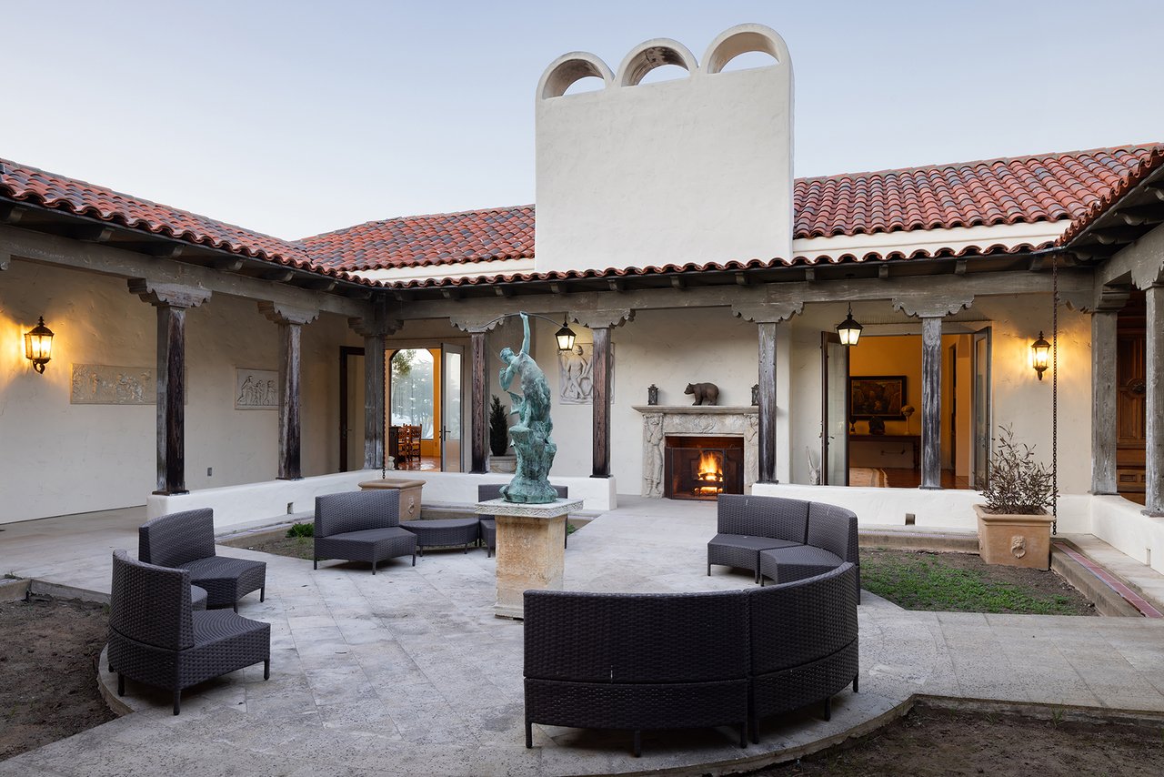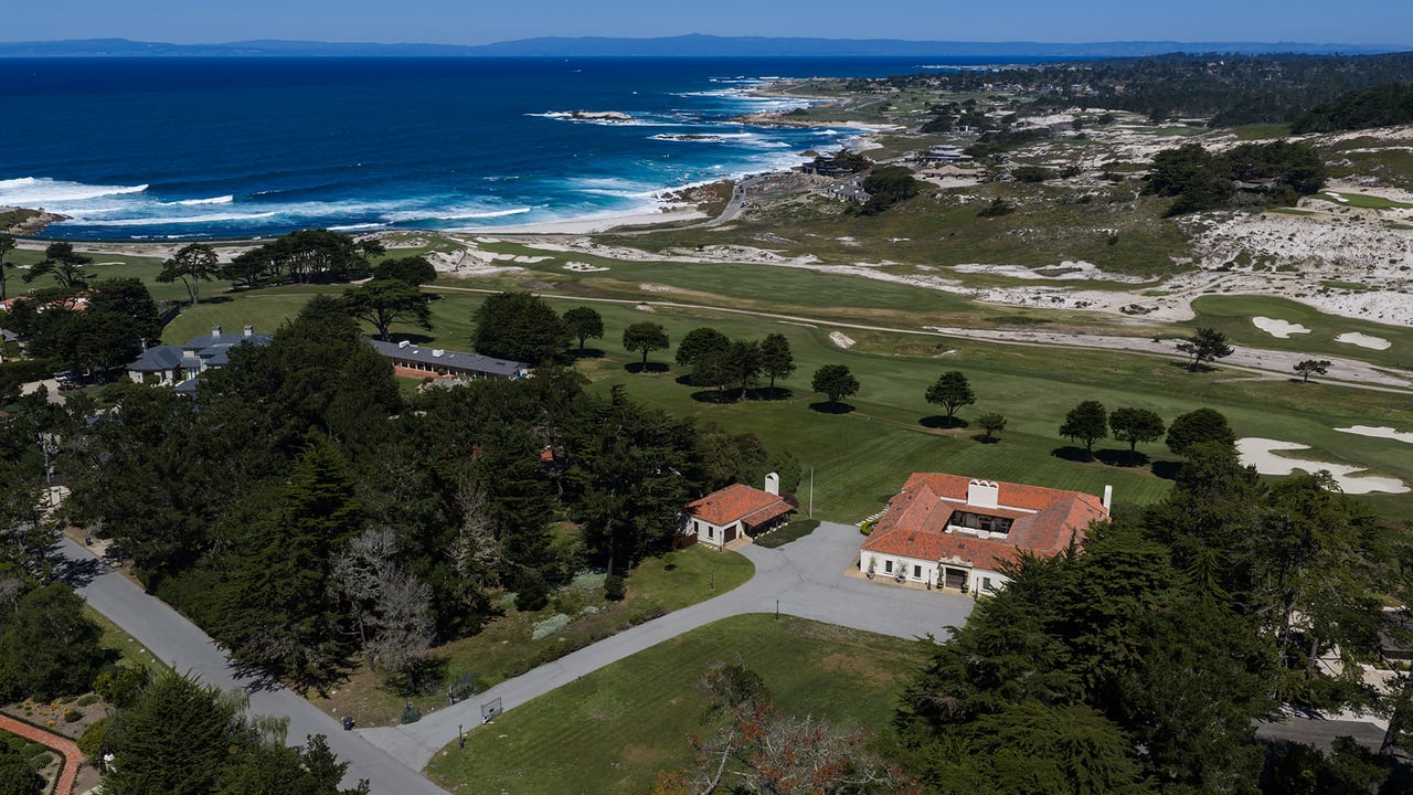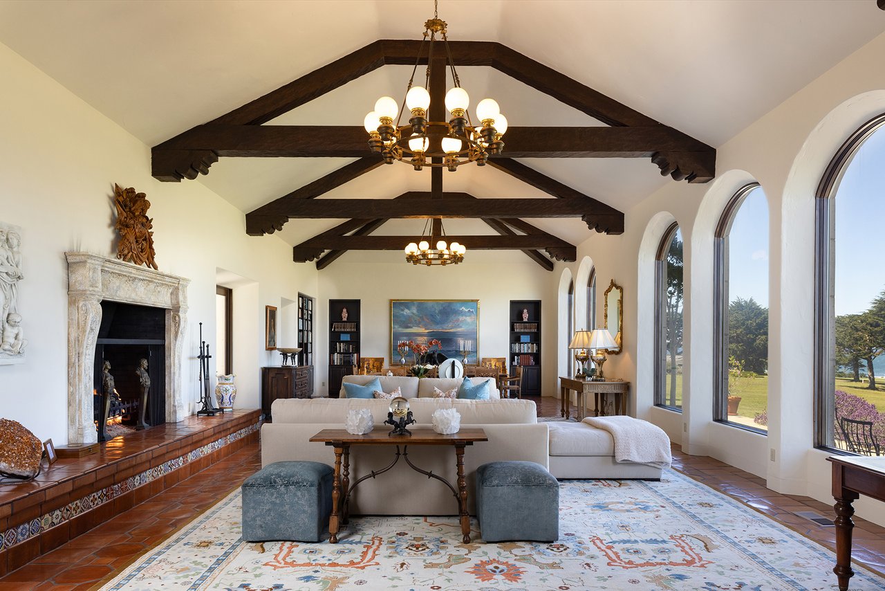 Porque Lane is a warm and welcoming single-level home in the heart of Pebble Beach located on Cypress Point Club, blending comfort with a quiet sense of luxury. The main residence offers three spacious ensuite bedrooms, along with a private guest house that’s perfect for hosting family or friends while still maintaining a sense of separation. Inside, the home feels both relaxed and refined, with inviting living spaces, a cozy library, and both casual and formal dining areas that make it easy to gather or unwind at your own pace. At the center of it all, a beautiful open-air limestone courtyard with a fireplace creates a natural place to relax and enjoy the indoor-outdoor lifestyle, while the surrounding outdoor seating and manicured front lawn add to the peaceful setting. It’s a home that feels easy to settle into, yet special enough to remember.